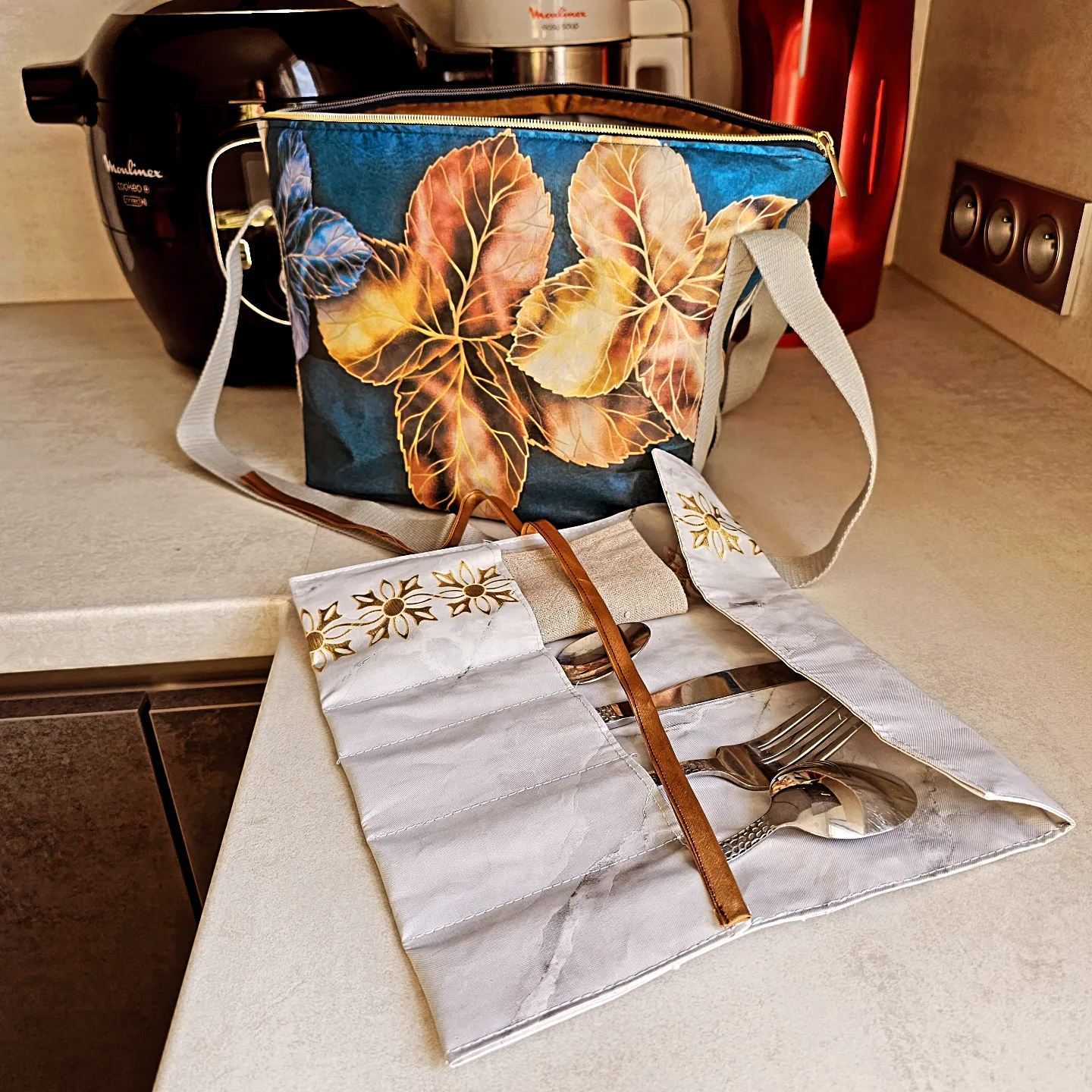 Lunch box  avec étui à couverts pouvant faire fonction de set de table