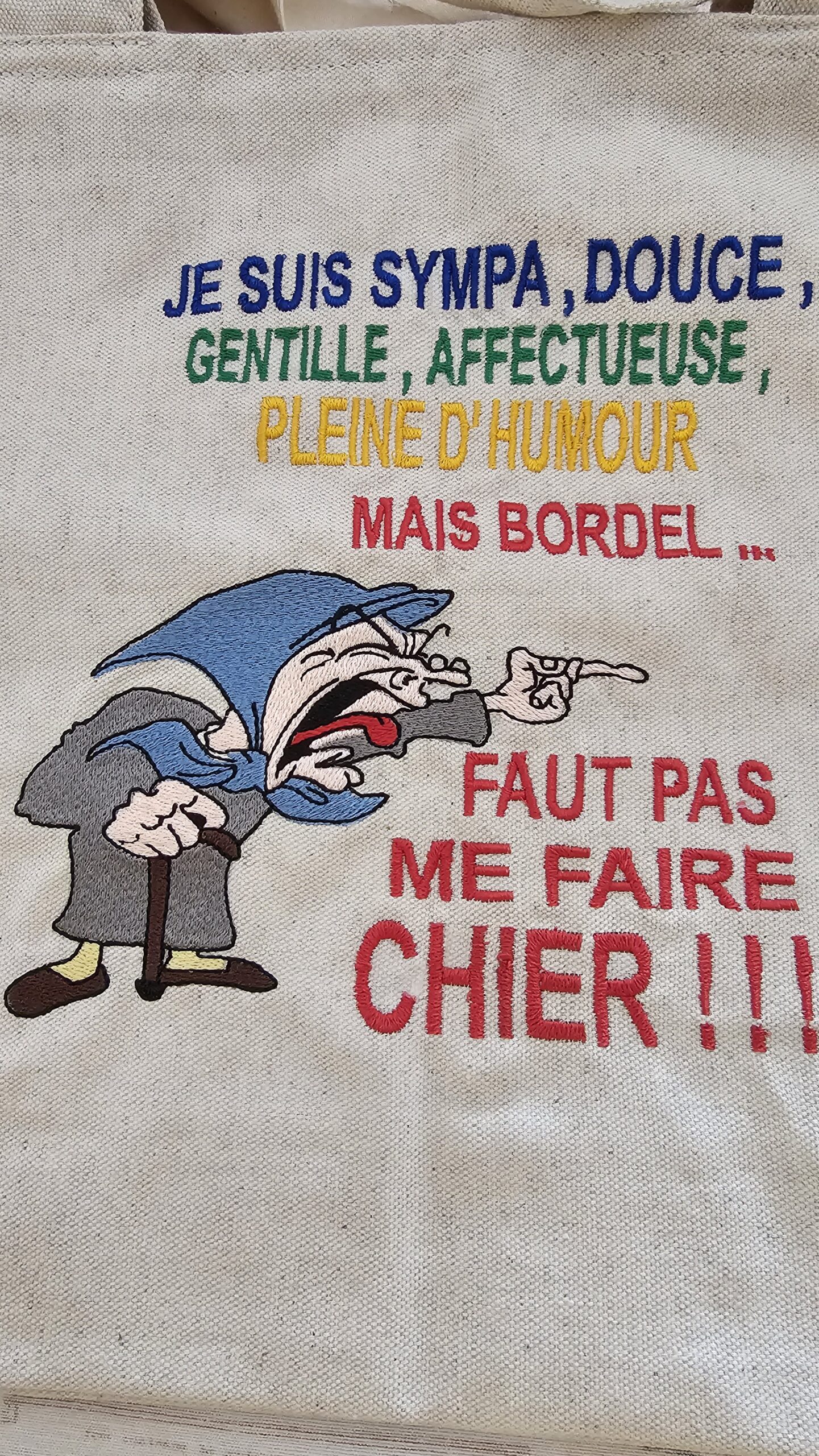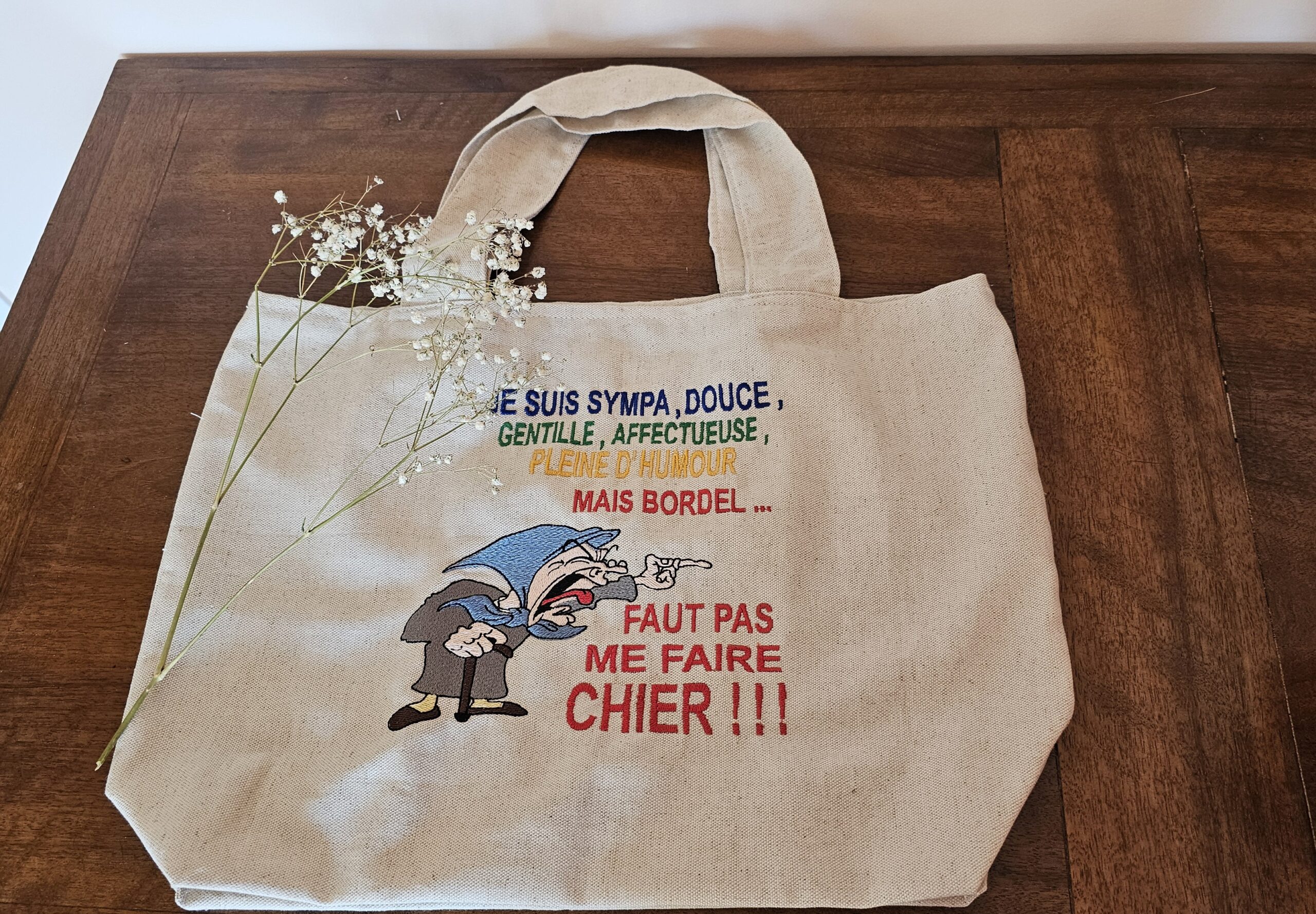 Tote bag la Râleuse brodé maison pour faire vos couses en signalant aux autre de ne pas vous embêter.